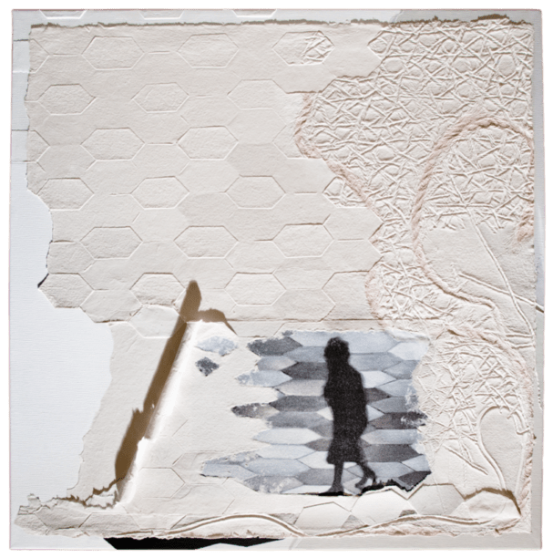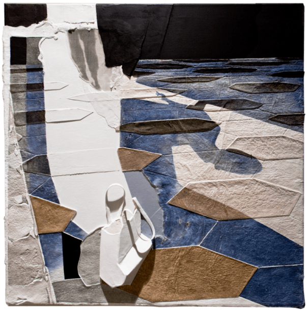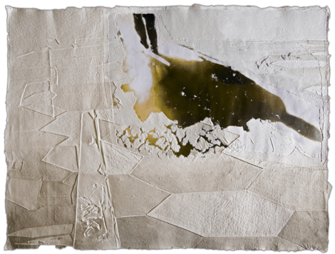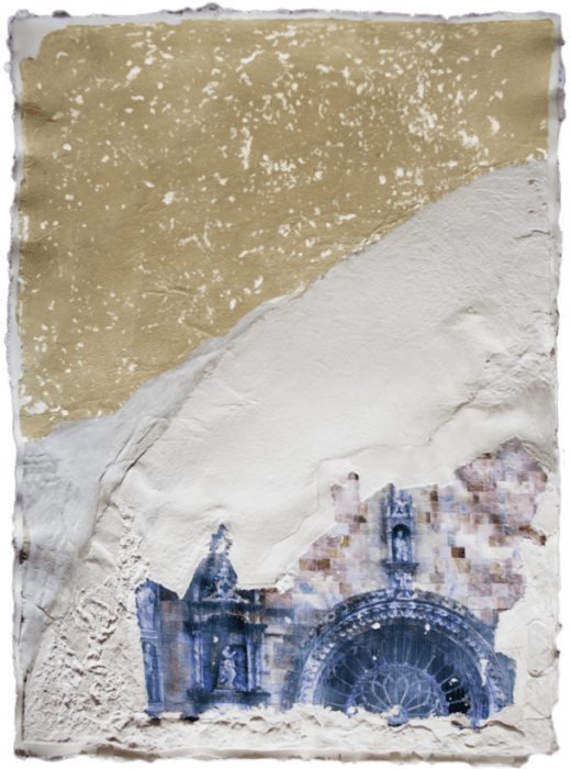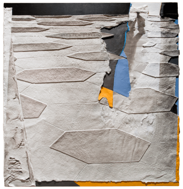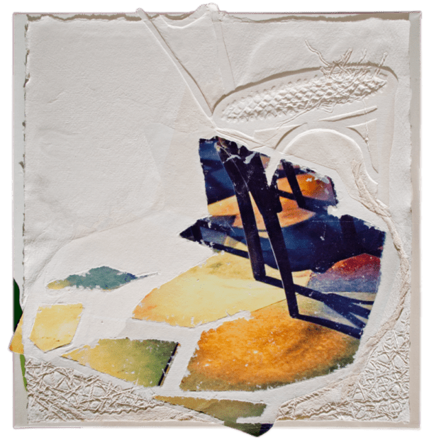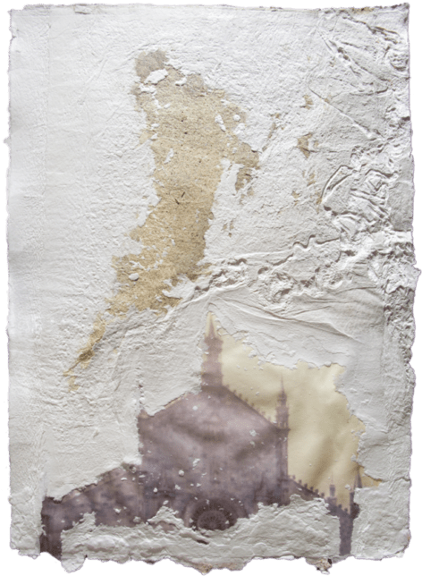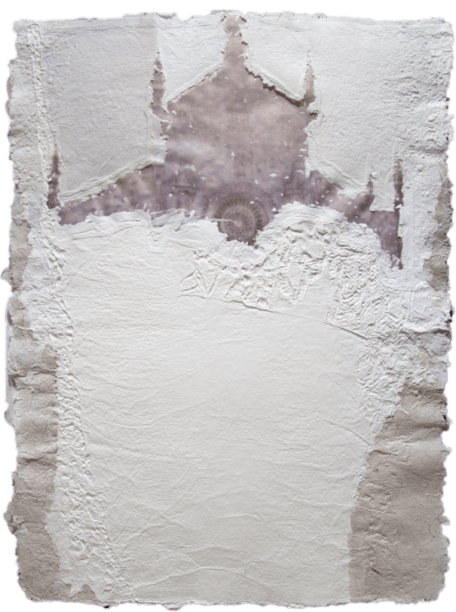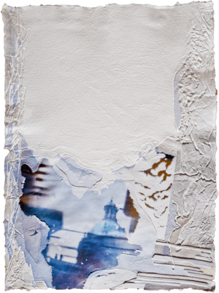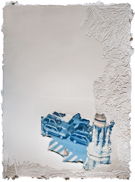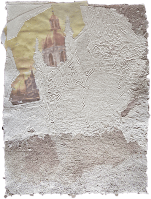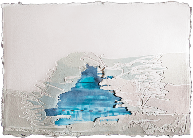 La carta, nelle sue molteplici declinazioni, appare, quindi, come materia viva e vibrante, come elemento naturale e dunque vitale, in cui natura e architetture si fondono nella superficie vissuta e articolata, nelle sfumature cromatiche degli ocra, dei bianchi e dei blu; sono opere bidimensionali “da toccare, da respirare, da sentire”.